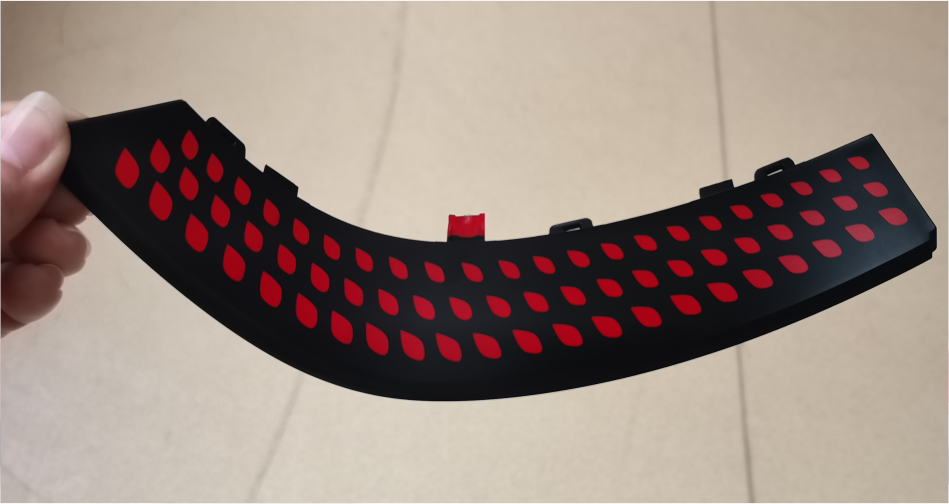 這是應用于汽車透光裝飾件(如透光logo、透光按鍵、氛圍燈飾條、門框飾條、控制面板、輪轂蓋、星空頂)的核心工藝。其對象通常是雙層材質的塑料件,底層為透光或有色材料,表層為極薄的不透光涂層(如油漆或鍍膜)。