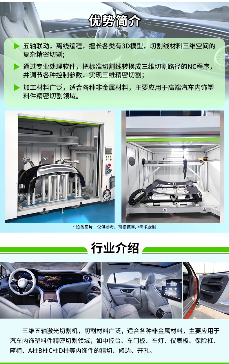 加工材料廣泛,適合各種非金屬材料,主要應(yīng)用于高端汽車內(nèi)飾塑料件精密切割領(lǐng)域。
